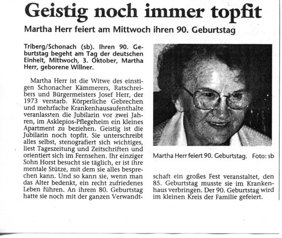 Ein Jahr zuvor konnte sie - "geistig topfit" - ihren 90. Geburtstag feiern.